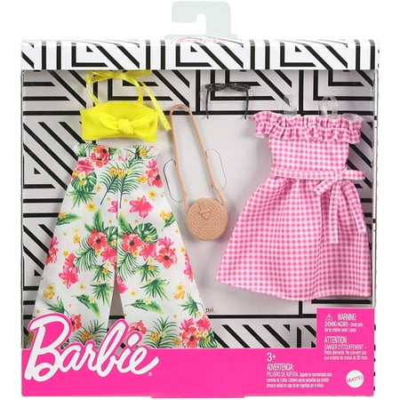 Barbie Fashions 2 Pack Clothing Set 2 Outfits Doll Include Floral Wide Legged Pants A Yellow Bandeau Top Pink Gingham Dress 2 Accessories For Kids 3 To 8 Years Old Walmart Canada